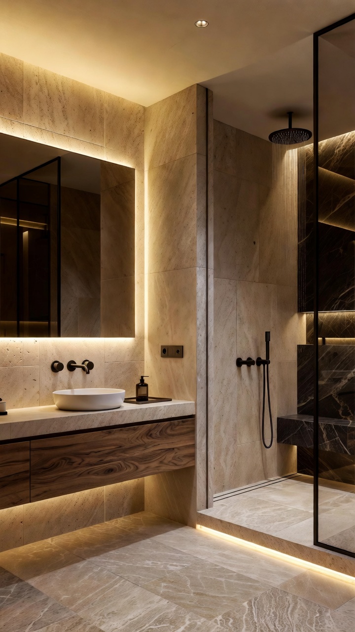👉 Materiales para recrear este baño spa madera + negro